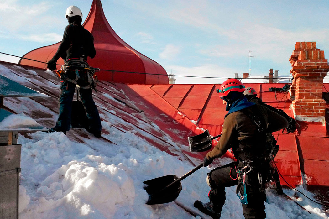- Использование страховочного оборудования: Работники, занимающиеся очисткой кровли, должны использовать страховочные пояса, тросы и другие средства индивидуальной защиты.